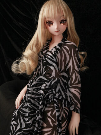 Explore Nagisa, a mini silicone sex doll featuring a hybrid design with a silicone body and a vinyl head. She boasts golden locks and wears black-and-white patterned sleepwear, exuding both sensuality and elegance. Discover her now!