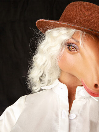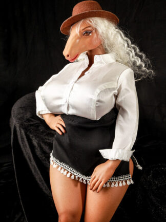 Maureen is a centaur silicone sex doll. She has the head of a horse, the hooves of a horse, the labia of a horse. Due to the unique nature of Maureen’s head, her hair had to be implanted and there were no wigs available to fit her head.